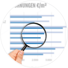 Für unser marktorientiertes Wertermittlungsverfahren ziehen wir Faktoren wie Angebot, Nachfrage, Beschaffenheit, Zustand sowie Mikro- und Makrolage der Immobilie heran. Zudem spielen die Bodenrichtwerte und – bei vermieteten Immobilien – auch der Reinertrag der Immobilie eine große Rolle. Auf diese Weise ergibt sich eine fundierte, realistische Darstellung der aktuellen Marktlage und vom potenziellen Verkaufspreis Ihrer Immobilie.