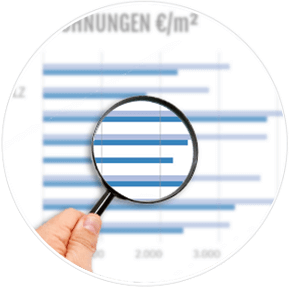 Für unser marktorientiertes Wertermittlungsverfahren ziehen wir Faktoren wie Angebot, Nachfrage, Beschaffenheit, Zustand sowie Mikro- und Makrolage der Immobilie heran. Zudem spielen die Bodenrichtwerte und – bei vermieteten Immobilien – auch der Reinertrag der Immobilie eine große Rolle. Auf diese Weise ergibt sich eine fundierte, realistische Darstellung der aktuellen Marktlage und vom potenziellen Verkaufspreis Ihrer Immobilie.