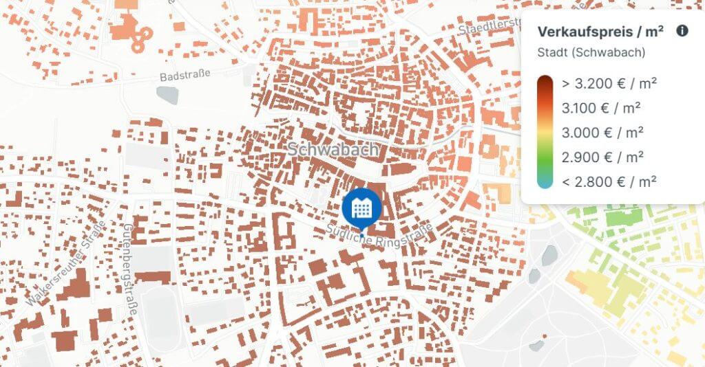 Tipp: Sie sind Eigentümer einer Wohnung in Schwabach und beschäftigen sich mit dem Gedanken, diese zu verkaufen? Mit unserem kostenlosen Immobilienmarktbericht erfahren Sie mehr zu Markt und Kaufpreisen. Und mit unserem Preisatlas ist es sogar möglich, die Kaufpreise direkt vor Ort zu ermitteln.